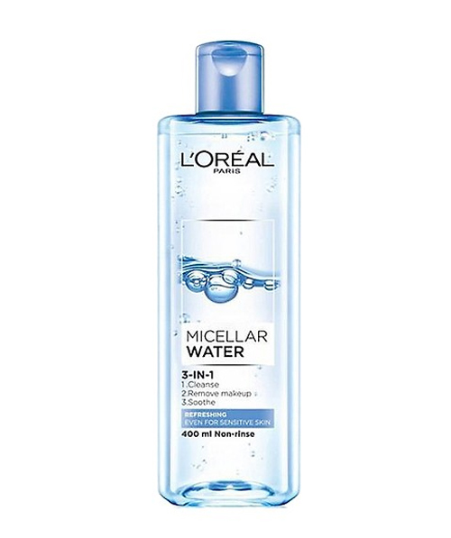 Nước tẩy trang Loreal Micellar Water 3 in 1 có thàng phần Refreshing – Tươi mát (xanh dương nhạt): Nhờ thành phần Nước khoáng lấy từ những ngọn núi ở Pháp, làn da trông tươi tắn lên sau khi tẩy trang.